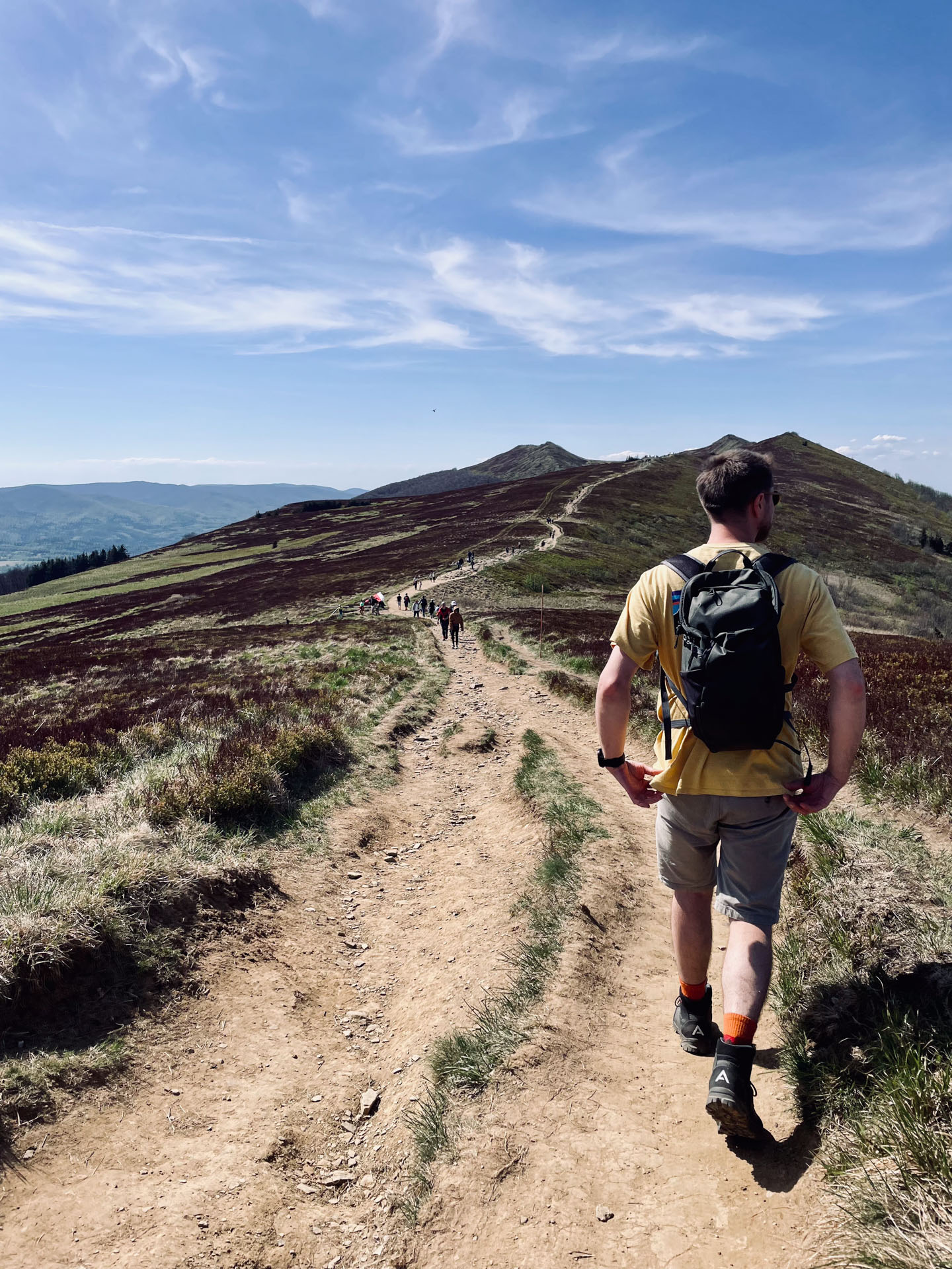 Znając Bieszczady od wielulastu lat wiemy, że w środku słonecznej majówki najgorsze miejsce, w którym można się znaleźć, to połoniny. Mimo wszystko tak bardzo chciałam je zobaczyć i to jak się zmieniło schronisko Chatki Puchatka, że postanowiliśmy zaryzykować. Zaparkowaliśmy w lesie (od czego ma się Wąskiego) żeby nie pchać się na zatłoczone parkingi, opłaciliśmy wstęp na szlak, kupiliśmy magnes na lodówkę (licząc, że nie jest z Chin) i ruszyliśmy na szlak.